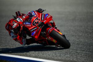 Francesco Bagnaia – 3º: “È stata una giornata molto positiva, forse il miglior venerdì della stagione finora. Ho avuto un buon feeling sia con le gomme nuove che con quelle usate. Sono riuscito a essere costante e a provare diverse soluzioni che hanno funzionato bene. Soprattutto, sono riuscito a frenare davvero forte, sentendo bene il front-lock all’anteriore, una sensazione che mi era mancata finora. Il passo gara è molto buono, anche se nel secondo time attack non sono riuscito a tirare fuori il massimo. Al momento il mio obiettivo è lottare per il podio, ma vedremo: la gara è stata finora il punto più complicato della stagione. L’obiettivo è quindi fare una buona qualifica e partire davanti, perché qui mi sento davvero bene”.