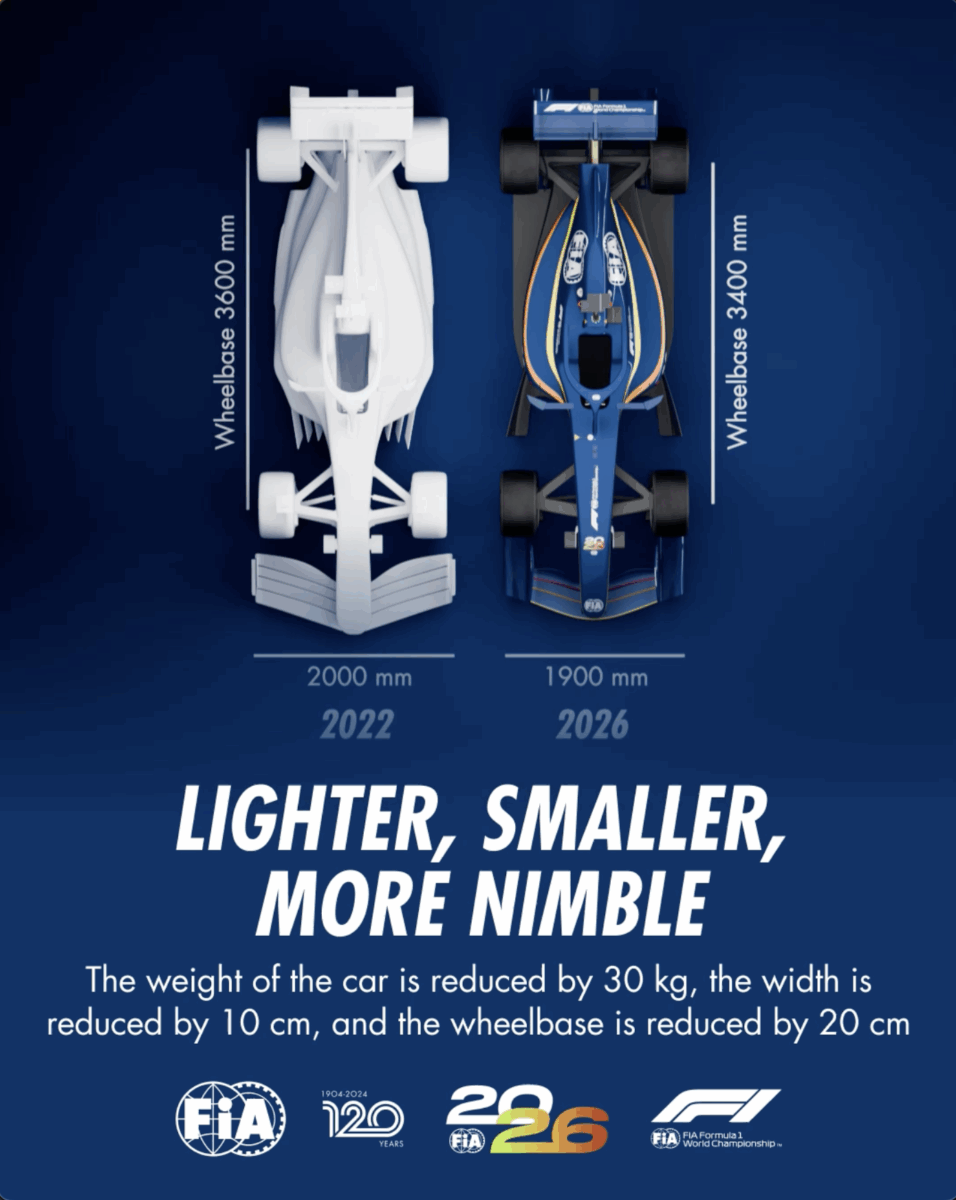 Inizialmente prevede tempi sul giro più lenti di 1-2,5 secondi, ma ha detto che “presto nessuno si lamenterà che le vetture sono troppo lente“. Un “pulsante boost” sostituirà il DRS, con parametri su misura per ogni circuito. Sulla possibilità di un ritorno del dominio in stile 2014, Tombazis ha affermato che i nuovi dettagli sul tetto dei costi e “ulteriori opportunità di sviluppo” aiuteranno qualsiasi Costruttore in ritardo a recuperare terreno.