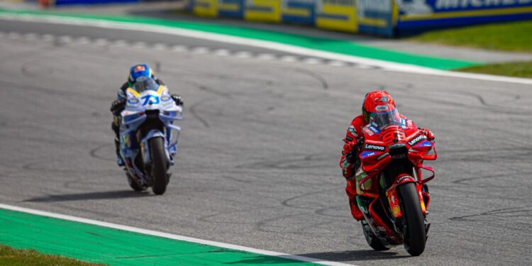 Marc Marquez e il Ducati Lenovo Team hanno trionfato nella tredicesima Sprint della stagione sul circuito austriaco di Spielberg. Francesco Bagnaia ha chiuso la sua corsa anzitempo a sei giri dal termine. Marquez è scattato perfettamente dalla quarta casella, inserendosi in seconda posizione alla prima curva. Dopo un lungo periodo di studio dietro al fratello Alex, lo ha poi sorpassato a cinque passaggi dal termine, tagliando il traguardo con un secondo e due decimi di vantaggio. Bagnaia ha sofferto uno spinning al posteriore in partenza, che gli è costato numerose posizioni. Pecco, in chiara difficoltà, si è poi ritirato nelle fasi centrali della corsa.