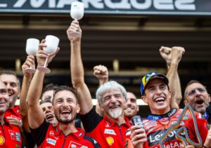 Marc Marquez – 1º: “Ovviamente la voglia di vincere qui era tanta. Quando il giovedì mi è stato chiesto quale fosse l’obiettivo su questa pista, ho risposto che, con la moto rossa, l’obiettivo era la vittoria, visto che è la moto contro cui ho perso tante volte in passato su questa pista. Sapevo che Marco (Bezzecchi) e Pecco sarebbero stati i principali avversari sulla lunga distanza, in quanto Alex doveva scontare il long-lap penalty, e dopo è sempre difficile risalire. Già da ieri avevamo notato che, tra tutti i piloti Ducati, Fermín (Aldeguer) era quello che gestiva meglio l’usura delle gomme. Quando ho visto il suo nome, ho capito che dovevo tornare a spingere, e abbiamo chiuso con un buon passo. Sono felice, stiamo lavorando davvero bene e ora ci aspetta Balaton”.