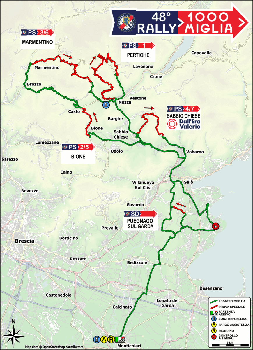 Le iscrizioni, che resteranno aperte fino al 12 settembre, come per tutte le edizioni recenti, si dovranno perfezionare in due fasi. La pre-iscrizione andrà completata tramite l’Area Riservata del sito acisport.it mentre l’iscrizione andrà poi conclusa tramite l’apposita area sul sito rally1000miglia.it dove sarà possibile compilare tutta la documentazione integrativa richiesta. L’edizione di quest’anno proporrà due giornate di gara ben differenziate, per un totale di 94,46 km di prove speciali rispettando il regolamento del TIR e si correrà sabato e domenica. Sabato 20 settembre sarà protagonista la celebre “Pertiche”, che torna al suo disegno completo da 26 km: un avvio spettacolare e selettivo, capace di creare distacchi importanti fin dalle prime battute. Domenica 21 settembre la corsa proseguirà con la tappa più completa composta da tre prove da ripetere due volte: la breve ma insidiosa “Bione” (6,13 km), la tecnica e veloce “Marmentino” (17,35 km) e la nuova “Sabbio Chiese – Dall’Era Valerio” (10,75 km), che unisce tratti iconici come il salto in paese e il passaggio sotto il Santuario delle Cornelle.