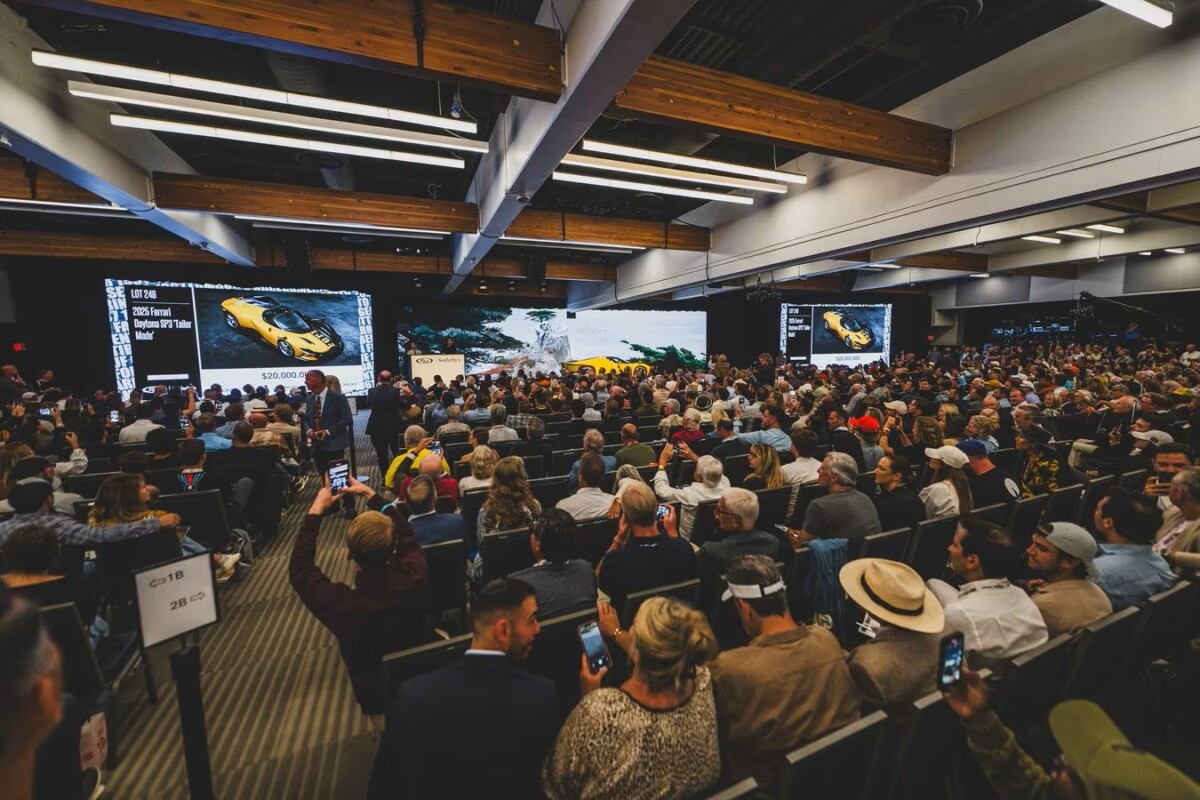 A Monterey, Ferrari e RM Sotheby’s hanno stabilito un nuovo record mondiale. È stato infatti venduto all’asta un esemplare unico di Daytona SP3 Tailor Made del 2025 per il valore di 26 milioni di dollari, diventando la Ferrari di nuova produzione più costosa mai venduta a un’asta. Commissionata come ulteriore esemplare oltre alla produzione originale in serie limitata di 599 unità, la vettura presenta una suggestiva livrea in fibra di carbonio a vista e Giallo Modena con il primo logo Ferrari a figura intera applicato sulla carrozzeria.