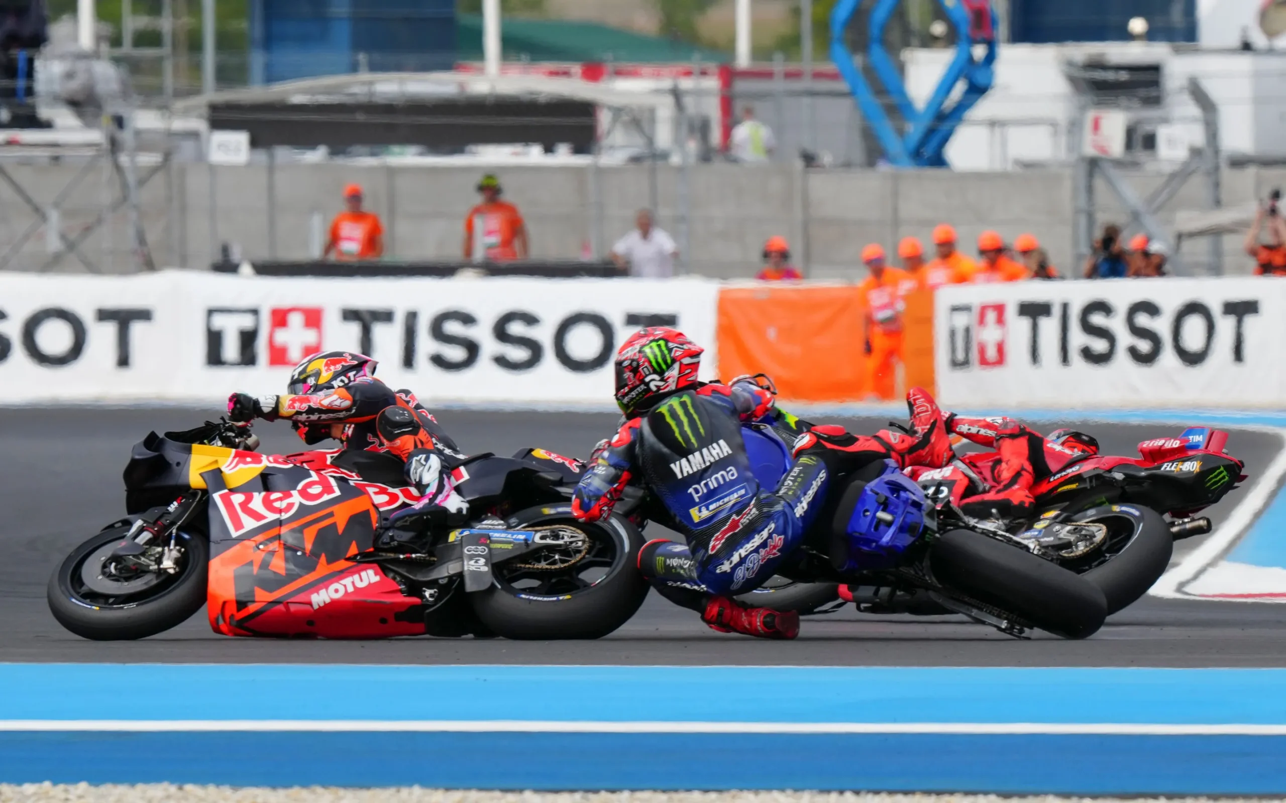 A contribuire alla fuga incontrastata del #93, un episodio causato al via da Fabio Quartararo (Monster Energy Yamaha MotoGP), che ha creato scompiglio esagerando nella prima frenata. Partito dalla sesta casella, il francese si è ritrovato terzo, ma troppo veloce per fare la curva. A rimetterci sono stati soprattutto Enea Bastianini (Red Bull KTM Tech3), Pedro Acosta (Red Bull KTM Factory Racing) e Marco Bezzecchi (Aprilia Racing). A guadagnarci, due coppie di compagni di squadra. In poco tempo Fabio Di Giannantonio si è portato in seconda posizione davanti a Franco Morbidelli (Pertamina Enduro VR46 Racing Team). A seguire gli ufficiali Honda HRC Castrol, Luca Marini e Joan Mir.