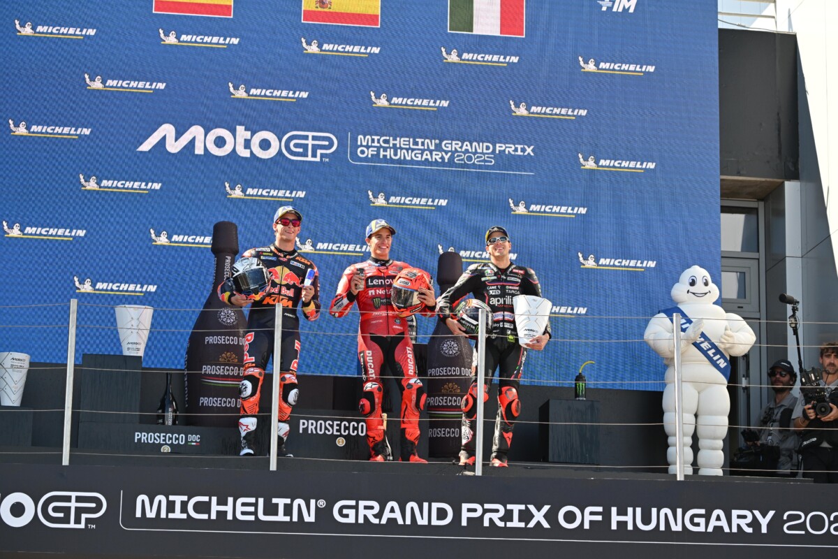 Marc Marquez e Ducati hanno vinto il GP d’Ungheria al Balaton Park, quattordicesimo round del 2025, che segna il ritorno della MotoGP nel Paese europeo.