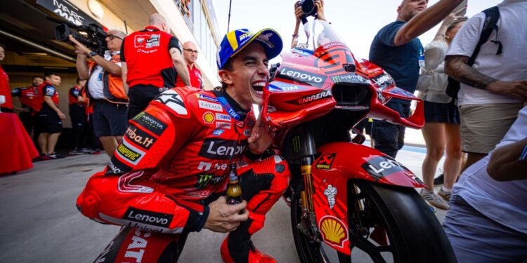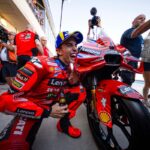 Marc Marquez (#93 Ducati Lenovo Team) – 1º: “Sono stato fortunato a non cadere dopo il contatto con Bezzecchi: non mi aspettavo che avrebbe rallentato così tanto alla curva due e gli sono finito addosso. Errore mio. Ho perso una posizione e da quel momento la mia gara ha avuto nuovamente inizio: sono rimasto paziente, avendo la gomma posteriore media a mio favore. Ho portato la gomma alla giusta temperatura e da lì ho iniziato a spingere. La scelta di gomme ha fatto davvero la differenza, perché questa mattina mi sono reso conto che, con la media, riuscivo a girare sullo stesso passo degli altri con la soft, e sapevo che col passare dei giri sarei riuscito a mantenere lo stesso ritmo”.