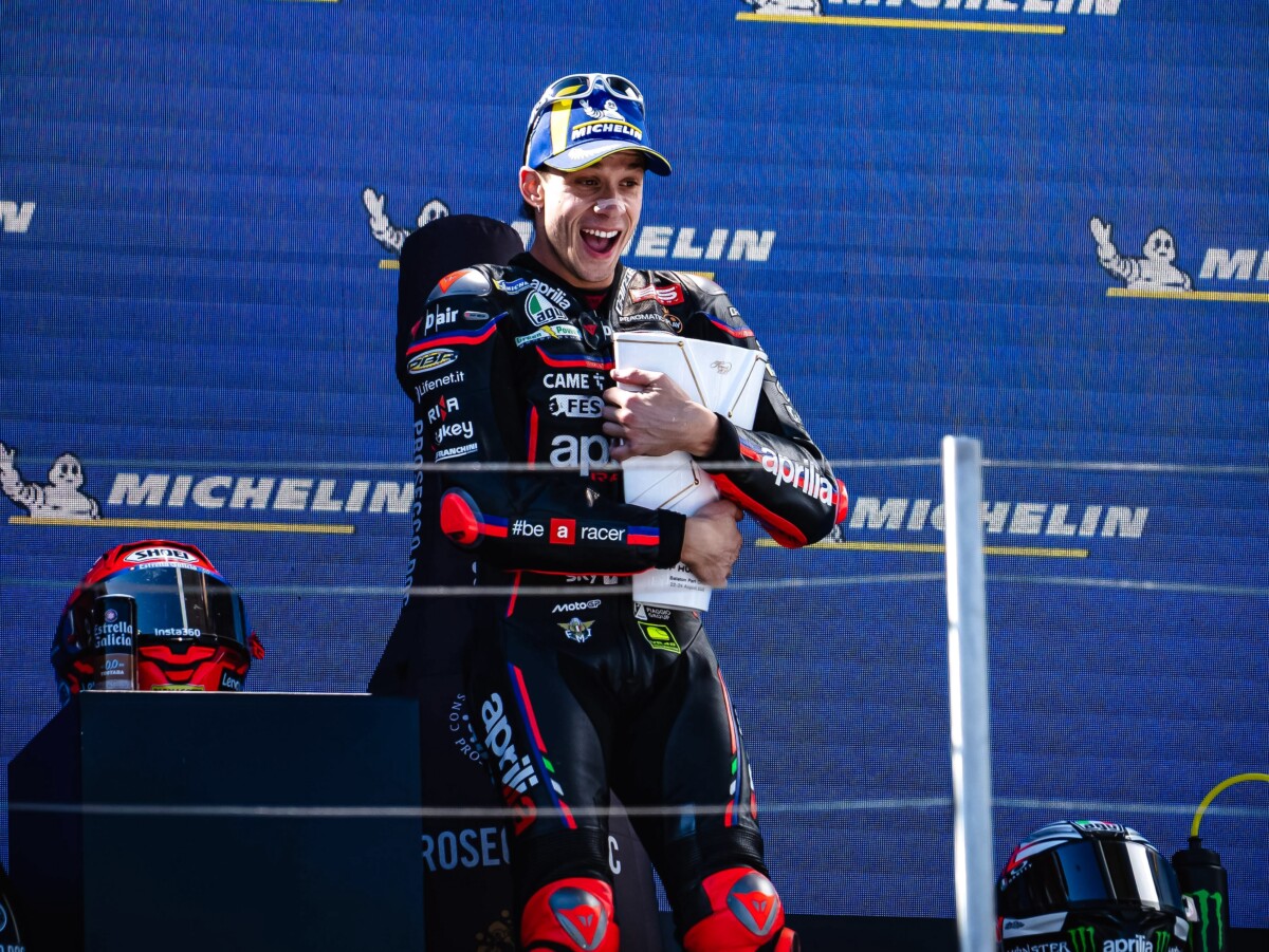 Giornata molto positiva anche per Jorge Martín, autore di una brillante gara in rimonta. Scattato dalla sedicesima posizione, il pilota spagnolo ha recuperato ben 12 posizioni, chiudendo quarto, il suo miglior risultato con Aprilia Racing. Un traguardo storico: solo un altro pilota prima di lui era riuscito a classificarsi nei primi quattro in uno dei primi quattro GP disputati con l’Aprilia, si tratta di Tetsuya Harada, terzo al quarto GP al Paul Ricard nel 1999.