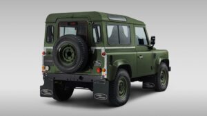 Caratteristici anche il paraurti anteriore zincato e la classica griglia in rete metallica, mentre il frontale presenta la cornice dei fari in nero opaco, ed è ispirato alla posizione della targa anteriore sull’iconica 4×4 di Churchill. Ulteriori dettagli includono una decalcomania “UKE 80” sui parafanghi anteriori e una targhetta personalizzata sul retro, oltre alle protezioni zincate e non verniciate.