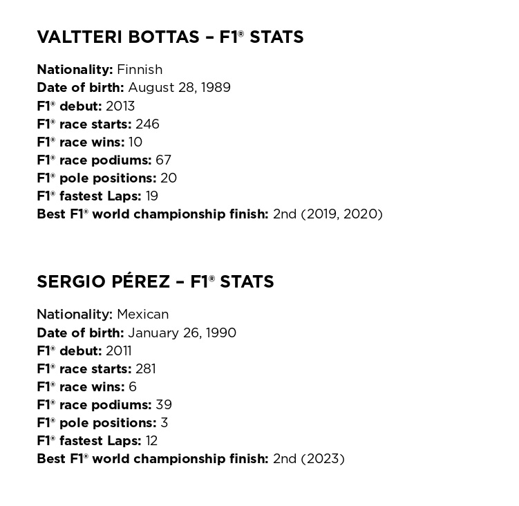 Il Cadillac F1 Team ha annunciato la firma di due piloti stellari: il 10 volte vincitore di GP Valtteri Bottas e il sei volte vincitore Sergio “Checo” Perez saranno alla volante della monoposto 2026, anno dei debutto della squadra in F1, Bottas e Parez apportano un mix ineguagliabile di esperienza, leadership e conoscenza tecnica, consentendo al Cadillac Formula 1 Team di partire subito al top nel campionato più prestigioso al mondo. Con oltre 500 GP disputati, oltre 100 podi e una profonda competenza nello sviluppo, la coppia svolgerà un ruolo centrale nel definire le basi competitive del team fin dal primo giorno.