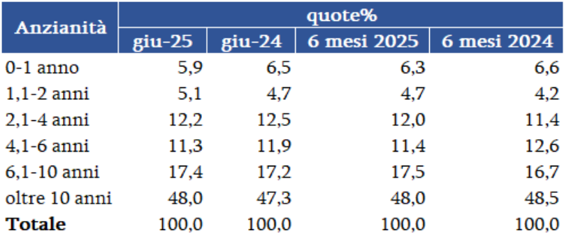 Usato 6 mesi 2025 vs Circolante al 31.12.2024 per Anzianità