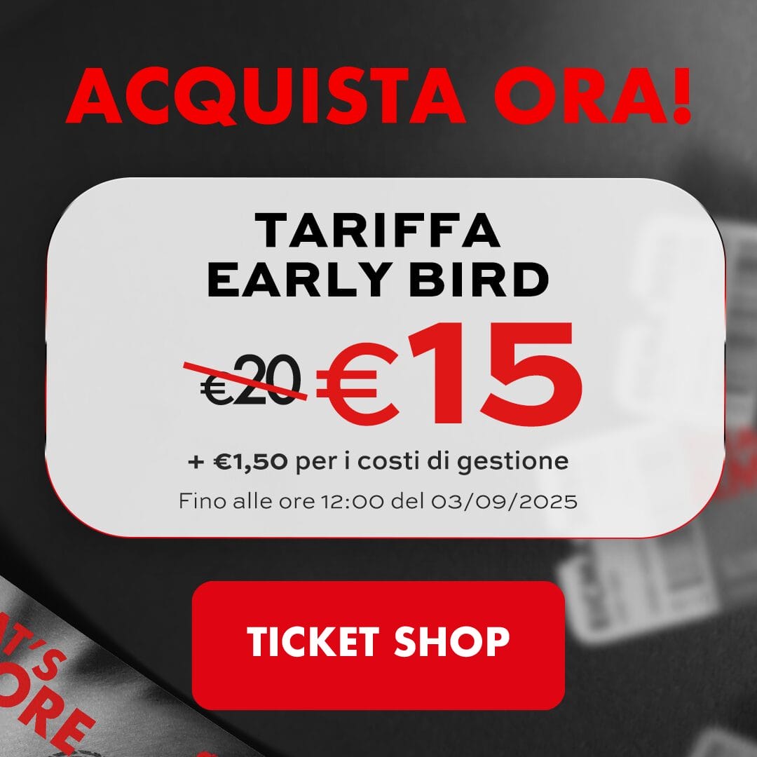 È ufficialmente iniziata l’ultima settimana di promozione dedicata all’acquisto dei biglietti in early bird per EICMA 2025, l’Esposizione internazionale delle due ruote, in programma a Fiera Milano Rho dal 6 al 9 novembre prossimi. Fino alle ore 12 di mercoledì 3 settembre 2025, gli appassionati avranno infatti l’opportunità esclusiva di acquistare i biglietti online con uno sconto del 25% sul prezzo intero. Per approfittare della promozione basta visitare il sito ufficiale della manifestazione www.eicma.it, unico canale di vendita, e seguire la procedura di acquisto che permette di assicurarsi in anticipo l’ingresso alla più grande manifestazione mondiale dedicata all’industria motociclistica al prezzo di 15 euro (più 1,50 euro di spese fisse di gestione) al posto di 20 euro (più 1,50 euro di spese fisse di gestione).