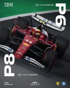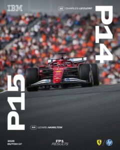 Per la Ferrari venerdì in Olanda con programma completato nonostante il traffico, le tante uscite di pista, una sospensione con bandiera rossa nel primo turno e due nel secondo. La Scuderia ha messo insieme un totale di 105 giri, 55 con Charles e 50 con Lewis, provando tutte le mescole da asciutto portate da Pirelli. Questa sera si analizzeranno a fondo i dati: c’è ancora del lavoro da fare per mettere i piloti in condizione di estrarre il massimo dalle rispettive SF-25. Domani nell’ultima sessione di prove libere, prevista alle 11.30 CEST, il focus sarà soprattutto sulla qualifica delle ore 15, fondamentale vista l’elevata difficoltà nel completare i sorpassi a Zandvoort.