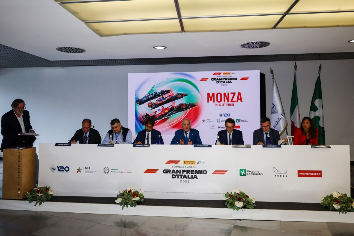 E’ stato presentato nella Sala della Regione (la sala stampa intitolata a Tazio Nuvolari quest’anno è occupata dai VIP del Paddock Club) il GP d’Italia 2025, sedicesima prova del Mondiale. Alla conferenza hanno preso parte il Presidente della Regione Lombardia Attilio Fontana, il Sindaco di Monza Paolo Pilotto e l’assessore allo Sport del Comune di Milano Martina Riva. Stefano Domenicali, Presidente e Amministratore Delegato di Formula 1, ha inviato un video di saluto. A fare gli onori di casa il Commissario Straordinario ACI Generale Tullio Del Sette, il Sub Commissario ACI Giovanni Battista Tombolato, il Presidente eletto di ACI Geronimo La Russa, ancora nella veste di presidente di AC Milano, e il presidente di Autodromo Nazionale Monza Giuseppe Redaelli. Collegati da remoto i Ministri Matteo Salvini e Andrea Abodi. Di seguito un sunto delle dichiarazioni.
