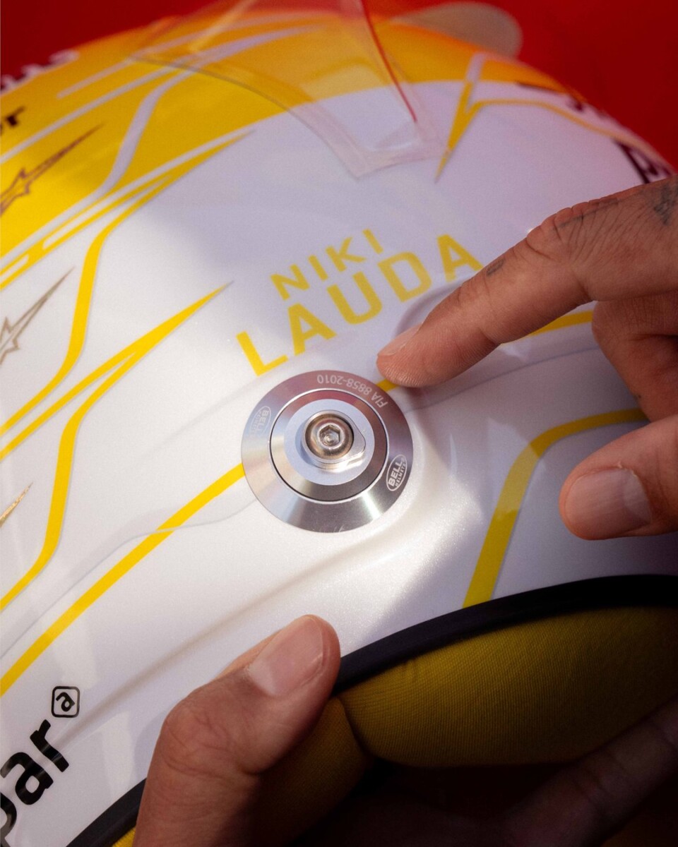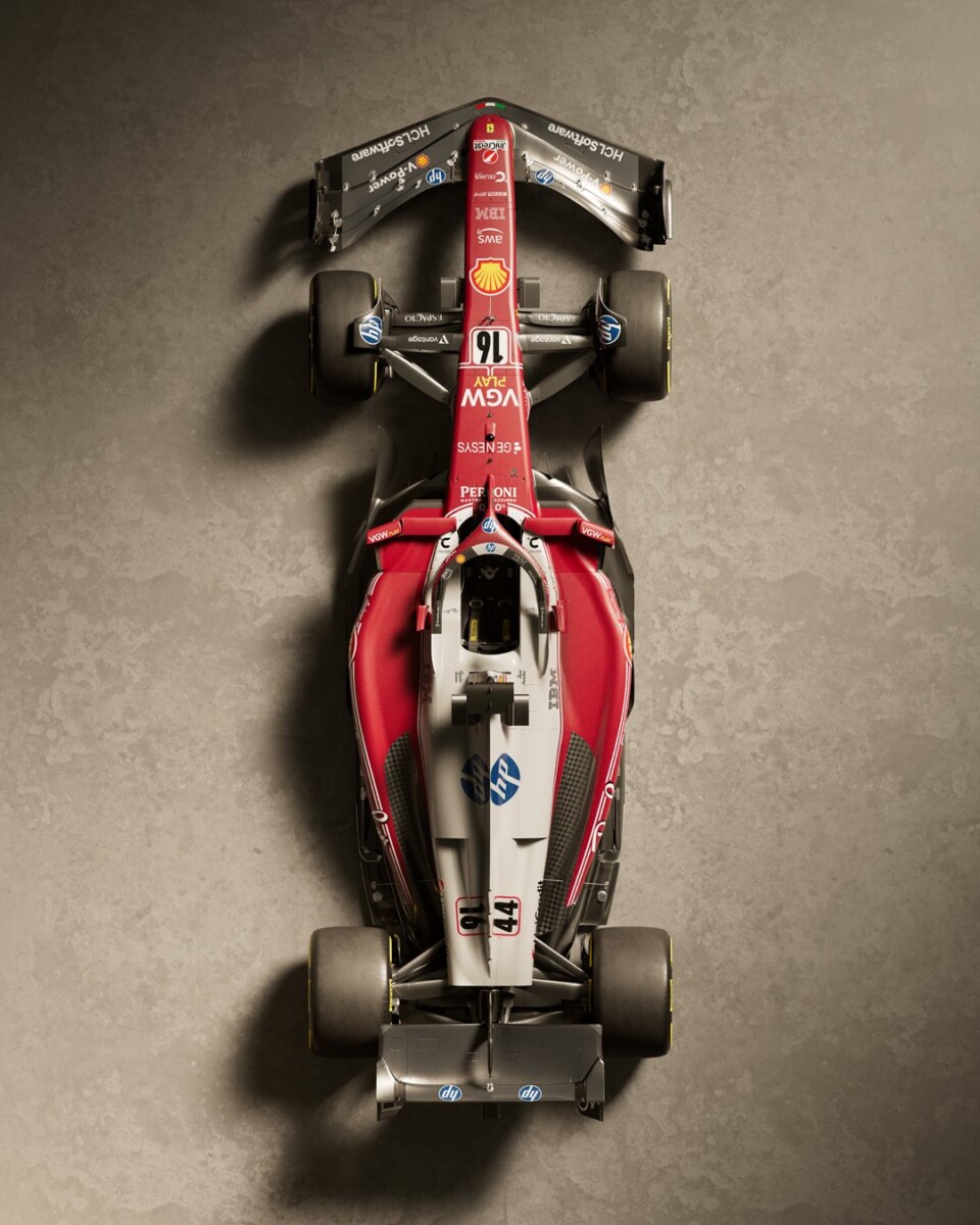 Livrea speciale. Della monoposto del 1975 rimane iconica anche la livrea, che per l’occasione rivivrà sulle monoposto di Charles Leclerc e Lewis Hamilton grazie al nuovo sistema di wrapping creato in collaborazione con il title partner HP che ha debuttato con la carrozzeria speciale sfoggiata al Gran Premio di Miami. Questa nuova tecnologia ha permesso di modificare il disegno della vettura in maniera significativa grazie al fatto di avere a disposizione una pellicola in PVC riciclabile più leggera rispetto alla precedente e più resistente alle alte temperature che si sviluppano sulle monoposto di Formula 1. Le SF-25, dunque, riporteranno in auge i tratti distintivi della leggendaria 312 T. La tonalità del rosso sarà la stessa della vettura di cinquant’anni fa e non mancheranno le celebri strisce bianche longitudinali sulla carrozzeria, così come i nomi dei piloti scritti in corsivo. Anche i numeri di gara saranno coordinati, in nero, incasellati in una tabella portanumero bianca. L’ala posteriore sarà color argento metallizzato, a ricordare l’alluminio che veniva utilizzato allora, prima che in Formula 1 arrivasse la fibra di carbonio. Il cofano che copre la power unit della SF-25 sarà ovviamente bianco, come quello della vettura di Lauda, e anche le ruote avranno un disegno ispirato ai cerchioni dell’epoca.