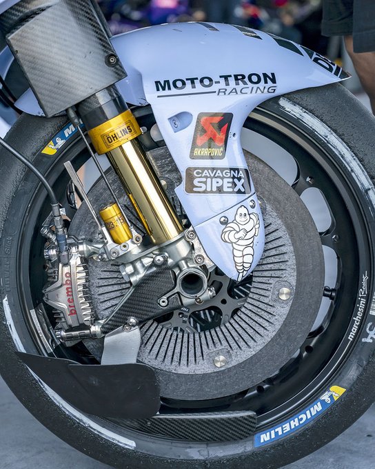La curva più dura del Circuit de Barcelona-Catalunya per l’impianto frenante è la prima: le MotoGP passano da 338 km/h a 100 km/h in 4,6 secondi in cui percorrono 257 metri mentre i piloti esercitano un carico sulla leva del freno di 6,7 kg. La decelerazione è di 1,5 g, la pressione del liquido freno Brembo raggiunge i 14,4 bar e la temperatura dei dischi in carbonio arriva a 700 °C.