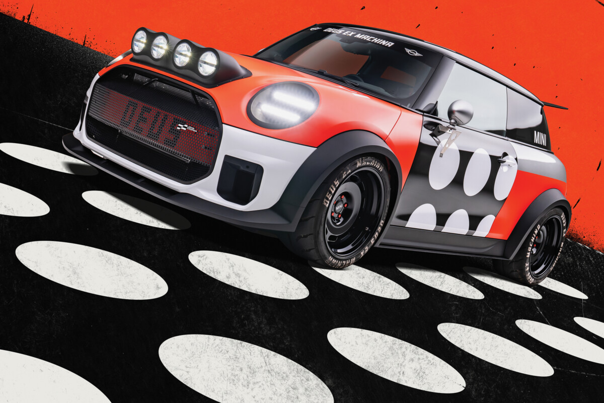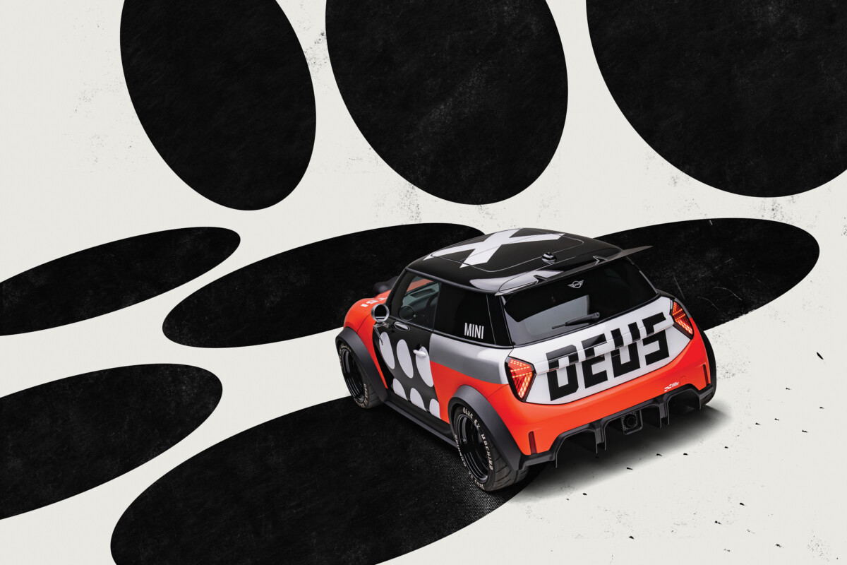 Il design esterno rende omaggio all’eredità sportiva del brand MINI.Ogni elemento è stato scelto con cura, combinando funzionalità e appeal visivo. La livrea rosso-bianco-nera, con accenti audaci e la scritta Deus posteriore, colpiscono immediatamente. I passaruota allargati richiamano la tradizione racing, fondendo estetica e performance. I quattro fari supplementari sul cofano, invece, rendono omaggio alle origini rallystiche. Ogni modulo luminoso su misura richiama il brand Deus, offrendo sia alte prestazioni che un’estetica distintiva.