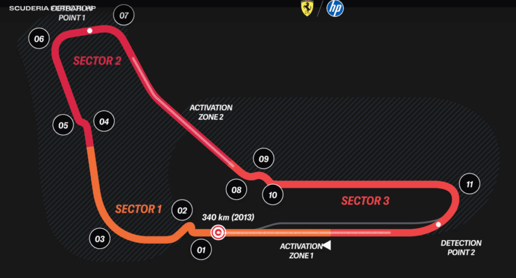 Lungo i 5.793 metri del percorso le monoposto toccano velocità altissime grazie ai lunghi rettilinei sui quali è possibile spingere al massimo. I tratti rapidi del circuito sono uniti tra loro da curve altrettanto celebri: basta pensare alla Variante del Rettifilo, in fondo al rettilineo del traguardo, alla Roggia, che segue la Curva Grande, che i piloti affrontano in pieno, e alla variante Ascari, che arriva dopo le due curve di Lesmo e lancia verso la celebre Parabolica, ora intitolata al grande Michele Alboreto. L’efficienza aerodinamica è fondamentale per avere velocità di punta ed è dunque scontato vedere vetture con ali particolarmente scariche: la natura della pista impone tuttavia di tenere in conto anche il comportamento delle monoposto nelle varianti, dove serve trazione in uscita per limitare i problemi legati alle gomme e potersi difendere in gara quando si viene attaccati. Anche ai freni è richiesta estrema efficienza dal momento che i piloti devono poter passare da 340 a 80 km/h nel breve spazio di 150 metri, come accade alla prima staccata dopo il via. Due le zone DRS: sul rettilineo principale e dopo la seconda curva di Lesmo, anche se Monza è la pista che premia meno la possibilità di aprire l’ala posteriore dal momento che già in condizioni standard la resistenza all’aria degli alettoni è minima.