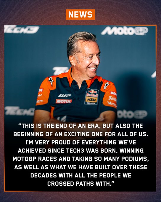 Tante smentite e infatti Guenther Steiner sbarca in MotoGP, alla guida di un consorzio che acquisirà la proprietà totale del team Red Bull KTM Tech3, compresa la Moto3. La nuova struttura diventerà pienamente operativa dal 2026. Con i nuovi proprietari inizierà una nuova era: Steiner assumerà il ruolo di CEO, mentre il partner del progetto Richard Coleman sarà team principal al posto di Hervé Poncharal, che continuerà a guidare la struttura Tech3 fino al termine della stagione in corso. Diventerà poi consulente e si occuperà di giovani talenti, trasmettendo loro la sua preziosa esperienza in MotoGP. Il team continuerà a competere come Tech3 e con moto KTM, come da accordi attuali. Manterrà la sua sede storica a Bormes-les-Mimosas, in Francia.