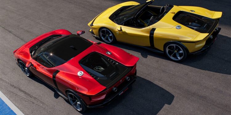 L’Assetto Fiorano può essere completato con una livrea esclusiva disponibile in due varianti cromatiche – Bianco Cervino e Rosso Corsa – a campitura a gradiente, che reinterpreta il classico tema a doppia banda longitudinale con un effetto sfumato. Il motivo parte dall’estremità del cofano, attraversa il tetto per poi concludersi sul low deck posteriore, generando un forte senso di dinamismo e modernità.