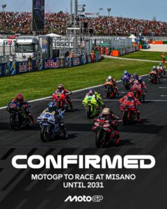“Siamo lieti di annunciare altri cinque anni a Misano – il commento di Carmelo Ezpeleta, CEO di Dorna Sports, detentrice dei diritti di MotoGP –. Il GP di San Marino offre sempre uno spettacolo unico, con un pubblico davvero appassionato e una fama di gare fantastiche che premiano l’amore per il nostro sport. Ringraziamo tutti coloro che hanno contribuito a rendere questo evento quello che è, mentre ci prepariamo a lavorare insieme per altri cinque anni con Misano, San Marino, l’Emilia-Romagna e tutta la Riviera di Rimini, che ogni stagione si accende al suono della MotoGP.”