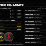Carlos Sainz occuperà una posizione nella prima fila della griglia per la quindicesima volta nella carriera (6 pole) mentre quello di oggi è il miglior risultato in qualifica per Liam Lawson, terzo col tempo di 1’41”707. Al suo fianco partirà Andrea Kimi Antonelli (Mercedes), quarto a un centesimo di ritardo dal neozelandese.