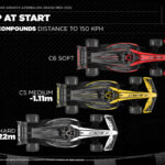 Nella terza sessione di prove libere la pista si è presentata decisamente in condizioni peggiori rispetto alla giornata precedente a causa della pioggia caduta nella notte e, soprattutto, del vento che portava molto sporco sull’asfalto. Il livello di grip è migliorato in maniera considerevole durante i sessanta minuti. Così come accaduto venerdì, le squadre hanno cercato di preservare il più possibile i tre set di Medium a disposizione, tanto che soltanto un pilota (Stroll) ha usato la C5. Sei piloti – le coppie di Alpine, Haas e Racing Bulls – hanno usato anche le Hard oltre alle Soft, con la C6 unica scelta da tutti gli altri 13 piloti.
