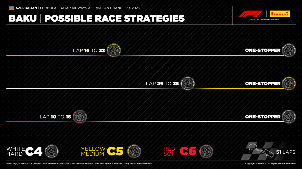 Dal punto di vista della strategia, i gara l’opzione nettamente più veloce è la sosta unica, con Medium e Hard che saranno le grandi protagoniste, al netto ovviamente delle eventuali neutralizzazioni. Per quanto riguarda la Soft il suo utilizzo in gara è improbabile ma non da scartare a priori, magari da chi vorrà fare un primo stint corto per poi mettersi a girare in aria pulita e arrivare fino alla bandiera a scacchi. Ovviamente, un primo stint con la Medium o con la Hard consente una maggior flessibilità, visto che non è da escludere – ne abbiamo avuto un assaggio oggi, sia nelle qualifiche che nella gara di F2 – che ci siano neutralizzazioni. Quello che è certo è che sarà una gara molto incerta, vista anche la griglia abbastanza diversa da quelle cui siamo stati abituati quest’anno”.