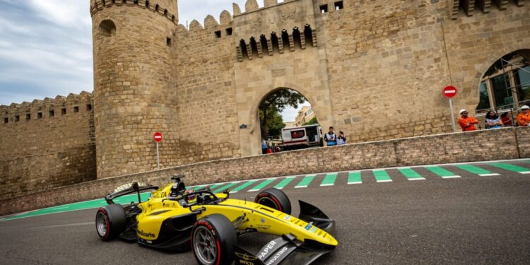 Come da tradizione, il Baku City Circuit ha offerto una corsa ricca di colpi di scena, con i portacolori di ACI Team Italia grandi protagonisti della corsa. Partito dalla prima fila, Leonardo Fornaroli ha subito preso il comando della gara beffando il poleman Jak Crawford. Anche Gabriele Minì ne ha approfittato balzando dal terzo al secondo posto. Il ventenne di Marineo ha poi duellato con Crawford dovendo cedere la posizione. A rivoluzionare la gara è stata la safety car, chiamata in pista per spostare la vettura di Martinius Stenshorne. I piloti ne hanno approfittato per effettuare la sosta ai box obbligatoria con Leonardo Fornaroli che è scivolato in quarta posizione. Ad approfittarne è stato Gabriele Minì, che, complice l’ottimo lavoro del Team Prema, è salito al comando.