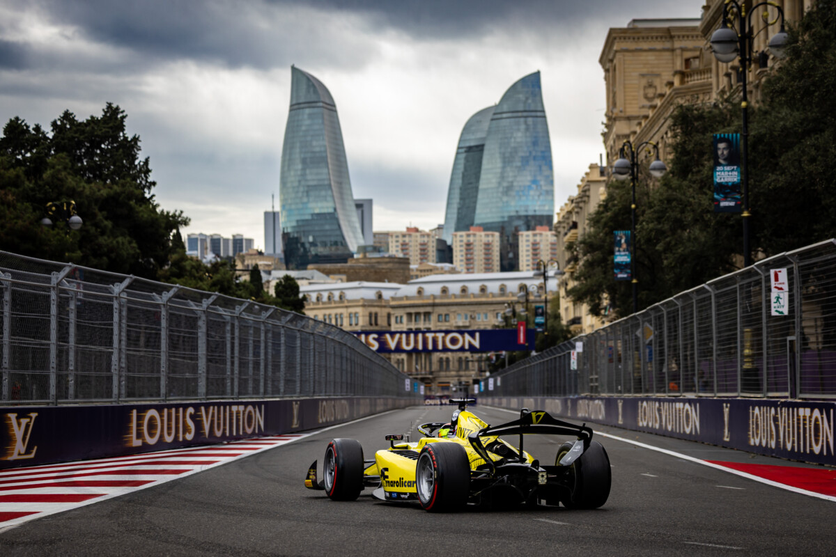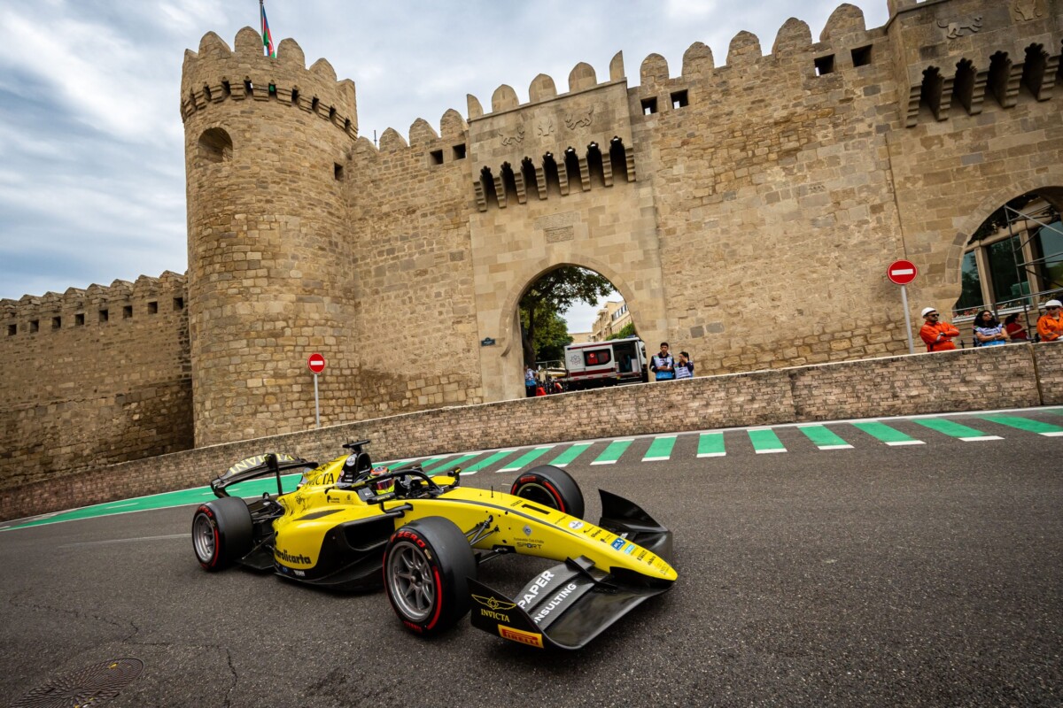 Come da tradizione, il Baku City Circuit ha offerto una corsa ricca di colpi di scena, con i portacolori di ACI Team Italia grandi protagonisti della corsa. Partito dalla prima fila, Leonardo Fornaroli ha subito preso il comando della gara beffando il poleman Jak Crawford. Anche Gabriele Minì ne ha approfittato balzando dal terzo al secondo posto. Il ventenne di Marineo ha poi duellato con Crawford dovendo cedere la posizione. A rivoluzionare la gara è stata la safety car, chiamata in pista per spostare la vettura di Martinius Stenshorne. I piloti ne hanno approfittato per effettuare la sosta ai box obbligatoria con Leonardo Fornaroli che è scivolato in quarta posizione. Ad approfittarne è stato Gabriele Minì, che, complice l’ottimo lavoro del Team Prema, è salito al comando.