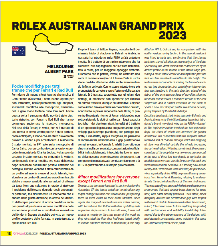 Torna un grande classico della letteratura tecnico-motoristica legata alla Formula 1: il volume, a firma di Paolo Filisetti, fra i disegnatori e divulgatori tecnici più apprezzati del Circus, analizza le principali evoluzioni tecnico-regolamentari che si sono avute nel biennio 2023-2024. Due annate vissute sull’introduzione di modifiche che hanno interessato sia l’aerodinamica delle monoposto, sia le Power Unit, ma anche abitacoli, freni, gomme oltre a diverse componenti dei propulsori.