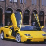 Il nome stesso evoca leggenda: Diablo, in omaggio all’omonimo toro da corrida leggendario che, nel 1869, si batté per ore contro il matador José de Lara, detto “El Chicorro”. Il debutto segna commercialmente un successo immediato con i primi ordini che arrivano già prima della presentazione, in un mondo che ancora non conosceva “preview” su social media e web. Con il suo V12 da 5,7 litri, 492 CV e 580 Nm di coppia, la Diablo accelera da 0 a 100 km/h in circa 4,5 secondi e stabilisce il nuovo record di velocità per vetture stradali, toccando i 337 km/h sul circuito di Nardò. Il telaio tubolare, la carrozzeria in alluminio e acciaio con inserti in fibra di carbonio, utilizzati per la prima volta su una vettura di serie, insieme alle sospensioni raffinate conferiscono alla Diablo un comportamento dinamico senza precedenti. Per la prima volta, una Lamborghini abbina prestazioni assolute a comfort innovativo, con sedili regolabili, alzacristalli elettrici, impianto stereo Alpine. Lusso, design e potenza si fondono senza compromessi.