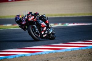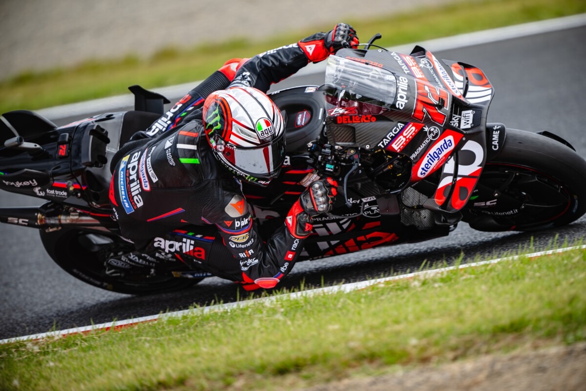 La prima giornata di prove sul Circuito Mobility Resort Motegi si è conclusa con sensazioni positive per Aprilia Racing. Marco Bezzecchi ha vissuto una FP1 complicata: prima una caduta nei minuti iniziali in curva 1, poi una seconda scivolata in curva 5, a circa 15 minuti dal termine, mentre era in sella alla seconda moto. Nonostante i pochi giri del mattino, nella practice, Bezzecchi ha mostrato un grande feeling con la RS-GP25, chiudendo la sessione al comando e conquistando così l’accesso diretto in Q2. Jorge Martín, dopo un’ottima FP1 chiusa al secondo posto, è incappato in due cadute nella practice, la prima in curva 5 e poi in curva 7, episodi che hanno ridotto notevolmente il tempo utile per migliorare i suoi tempi. Martín ha concluso la sessione in tredicesima posizione e sarà quindi costretto a passare dalla Q1 nella giornata di sabato. Da segnalare anche la performance di Raúl Fernández, del Trackhouse MotoGP Team, che ha chiuso la practice in nona posizione, qualificandosi direttamente per la Q2 insieme a Bezzecchi.