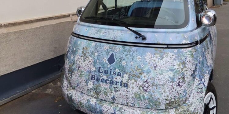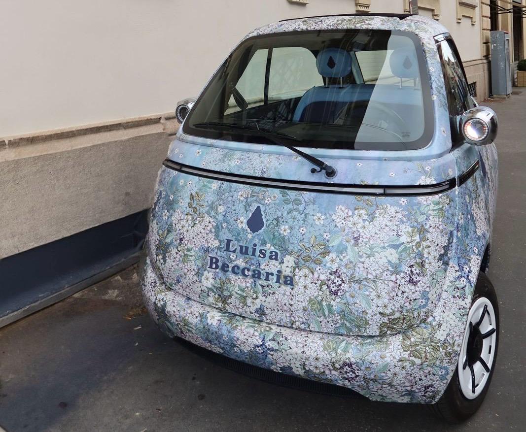 Prende ufficialmente il via la partnership tra Microlino e Luisa Beccaria: due realtà che raccontano, con linguaggi diversi ma armonici, la stessa Italia fatta di creatività, eleganza e rispetto per l’ambiente. Al cuore della collaborazione c’è una Microlino unica e inconfondibile. L’esterno è stato wrappato con la stampa corporate del brand, trasformando la citycar in una tela in movimento che porta con sé l’universo estetico della maison. All’interno, i sedili sono rivestiti con materiali ecosostenibili e impreziositi dal logo Luisa Beccaria, in un dialogo tra sartorialità e tecnologia che rende ogni dettaglio unico. La macchina è stata presentata il 24 settembre a Palazzo Bovara, in occasione della sfilata di Luisa Beccaria durante Milano Fashion Week.