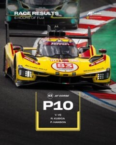 La 6 Ore del Fuji termina con le 499P della squadra ufficiale Ferrari – AF Corse in 11° e 15° posizione rispettivamente con gli equipaggi #50 e 51, formati da Antonio Fuoco-Miguel Molina-Nicklas Nielsen, e da Alessandro Pier Guidi-James Calado-Antonio Giovinazzi. Decima al traguardo la 499P del team privato AF Corse, affidata al pilota ufficiale del Cavallino Rampante Yifei Ye, insieme a Robert Kubica e Phil Hanson.
