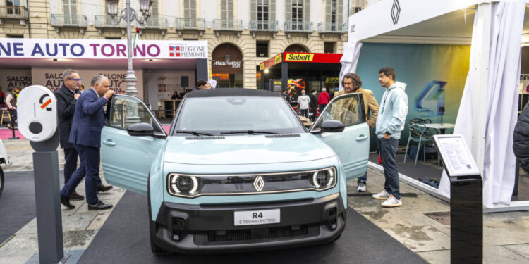 nel cuore pulsante del capoluogo piemontese e che anche lo scorso weekend ha riunito i principali costruttori automotive. Renault porta avanti una strategia definita “a due gambe”, che consiste nel proporre una doppia gamma, full hybrid e 100% elettrica, con un’offerta prodotto in ogni segmento per entrambe le alimentazioni. R4 spicca nell’offensiva elettrica della Marca, assieme a R5 e a Nuova Twingo che arriverà nel 2026.