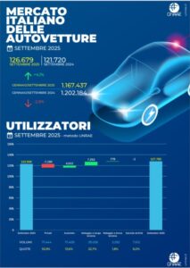 “L’interruzione del trend negativo, già prevista da UNRAE, non costituisce un reale segnale di miglioramento, ma deriva solo dal confronto con un settembre 2024 già molto debole e dall’effetto del calendario, che nel 2025 ha un giorno lavorativo in più rispetto all’anno scorso. Il mercato si trova da tempo in una fase di stagnazione e il mese di settembre, confrontato col periodo pre-pandemico, mostra una perdita del 14,6% con 21.000 unità in meno”, ha dichiarato Roberto Pietrantonio, Presidente UNRAE.