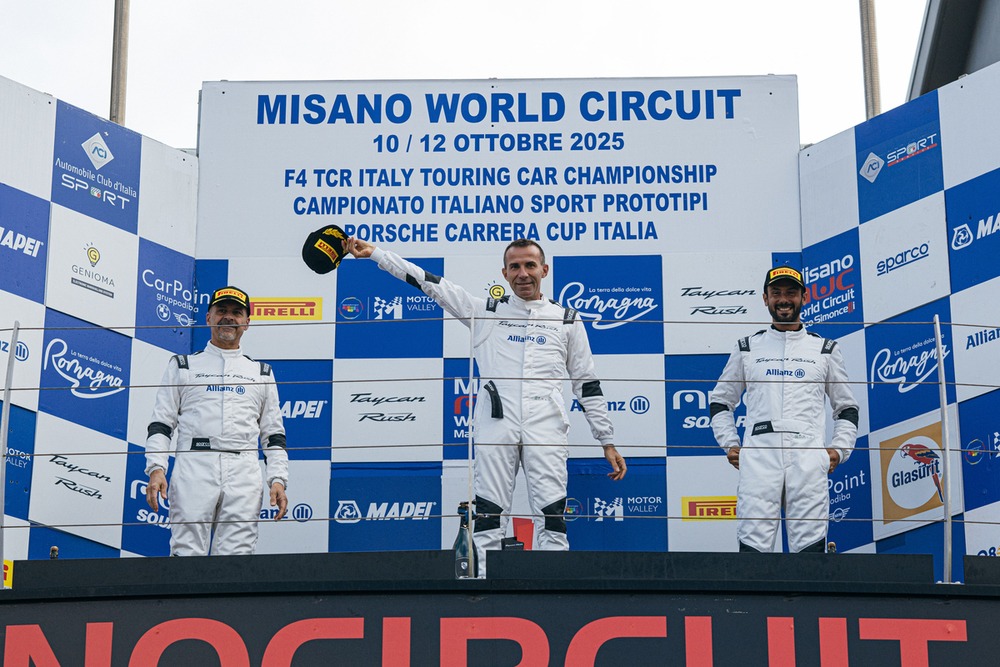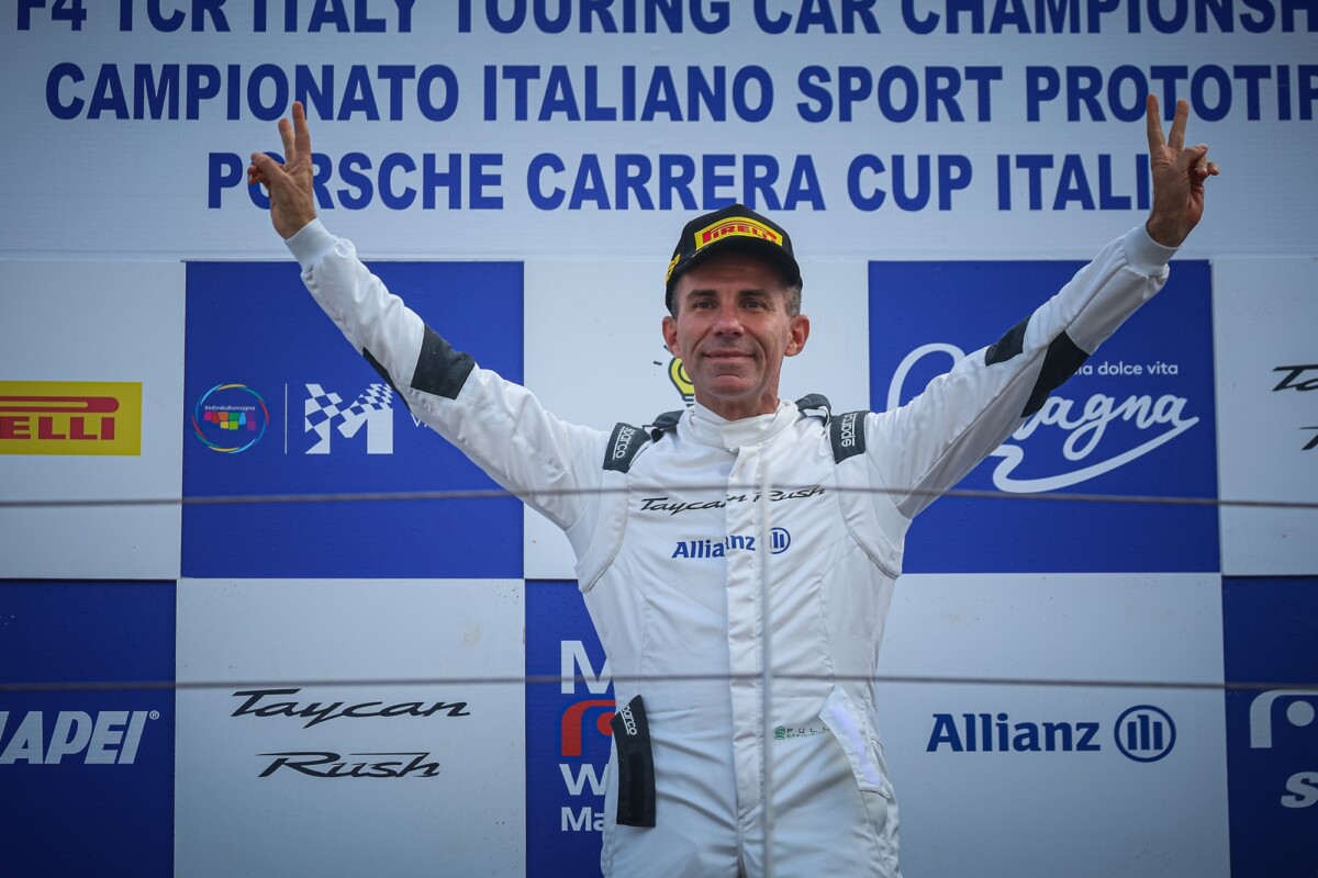 In pista, fra agonismo, scelte strategiche e “slow zones” appositamente inserite in punti specifici del circuito, i primi tre classificati si sono giocati la vittoria conquistando una manche di gara a testa. Il miglior punteggio ottenuto nella seconda e la costanza nei tempi sul giro nella classifica a punti finale hanno premiato Andrea Levy. Il piemontese ideatore di MiMo e Presidente di Salone Auto Torino si è così aggiudicato la tappa finale della Taycan Rush, regalando al Centro Porsche Bologna il primo successo stagionale. Sul podio sono quindi saliti i Centri Porsche di Milano con Fausto Gasparetto (già vincitori a Imola) e i Centri Porsche di Roma con Andrea Fumi. A seguire, il Centro Porsche Padova con Fabio Bosco, il Centro Porsche Catania con Luciano Micale, che sulla Taycan sfoggiavano la livrea ufficiale del main partner Allianz, il Centro Porsche Bergamo con Enrico Fornito, il Centro Porsche Bari con Andrea Pizzi e il Centro Porsche Torino con Roberto Picogna. Gli highlights e i commenti del weekend conclusivo saranno disponibili nei prossimi giorni tra i contenuti gratuiti di DAZN, che li trasmette on demand dopo ogni appuntamento.