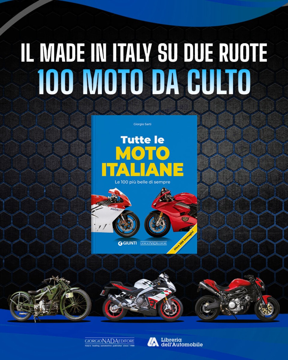 Tutte le moto italiane – Le 100 più belle – di Giorgio Sarti – Giorgio Nada Editore, 2025 – Formato: 16×21 – Pagine: 240 – Foto: 10 in b/n e 500 a colori – Brossura – Testo: italiano – Collana: Marche moto – Prezzo: 23,65 euro