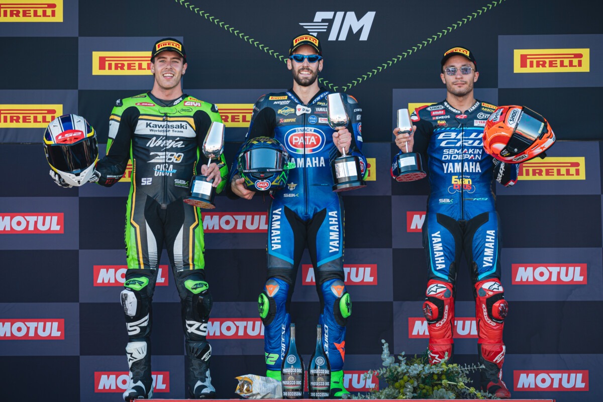 In WorldSSP successo di Stefano Manzi (Yamaha) davanti a Jeremy Alcoba (Kawasaki) e Can Oncu (Yamaha), rispettivamente secondo e terzo. Tutti i piloti hanno gareggiato con la combinazione SC1 anteriore e SCX posteriore.