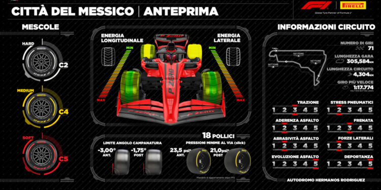 Anche in Messico, così come ad Austin a distanza di una sola settimana, verrà adottata una selezione che prevede un salto di mescola tra la più dura del tris e la media. Se infatti Medium e Soft rimarranno, come l’anno scorso, C4 e C5, la Hard sarà invece C2. Per un circuito come quello di Città del Messico, quest’ultima mescola risulta estremamente conservativa, con un considerevole delta in termini di tempo sul giro rispetto alle altre due e una minore aderenza. Nel 2024 la Soft era stata utilizzata soltanto come mescola da qualifica e, in gara, esclusivamente per tentare di ottenere il punto aggiuntivo del giro più veloce, ma ora lo scenario potrebbe cambiare sensibilmente. Il vantaggio offerto da C4 e C5 potrebbe infatti spingere le squadre a puntare su un Gran Premio disputato principalmente su queste mescole, con il rischio però di dover effettuare una seconda sosta ai box a causa del degrado. Chi sceglierà invece la C2 potrà gestire uno stint più lungo in maniera relativamente tranquilla, programmando un solo cambio prima della bandiera a scacchi, ma a scapito della prestazione.