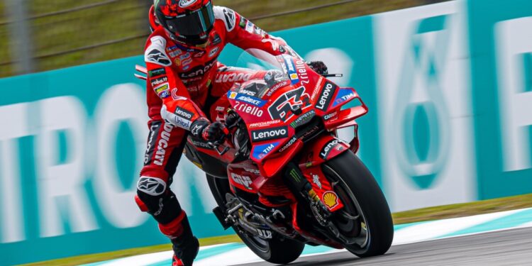 Il Ducati Lenovo Team ha terminato la prima giornata in pista al Sepang International Circuit in Malesia, teatro del ventesimo GP della stagione. Francesco Bagnaia, dopo una buona prestazione nelle libere, ha terminato le Practice in dodicesima posizione. Come il compagno di squadra Michele Pirro – ventiduesimo – sarà costretto a prendere parte alla Q1. Bagnaia, che aveva chiuso le libere sul bagnato in seconda posizione, è rimasto tra i primi tre per buona parte della sessione del pomeriggio. Tuttavia, con l’arrivo di una leggera pioggia nel finale, non è riuscito a migliorare il proprio tempo e ha chiuso dodicesimo, a soli 89 millesimi dalla top ten. Michele Pirro ha continuato il lavoro di messa a punto della Desmosedici GP, completando il turno pomeridiano in ventiduesima posizione. Il Ducati Lenovo Team tornerà in azione domani mattina alle 4:10 ora italiana per le Free Practice 2, a cui seguiranno la Q1 alle 4:50 e la Q2 alle 5:15. La ventesima Sprint della stagione, di 10 giri, avrà inizio alle 9:00.