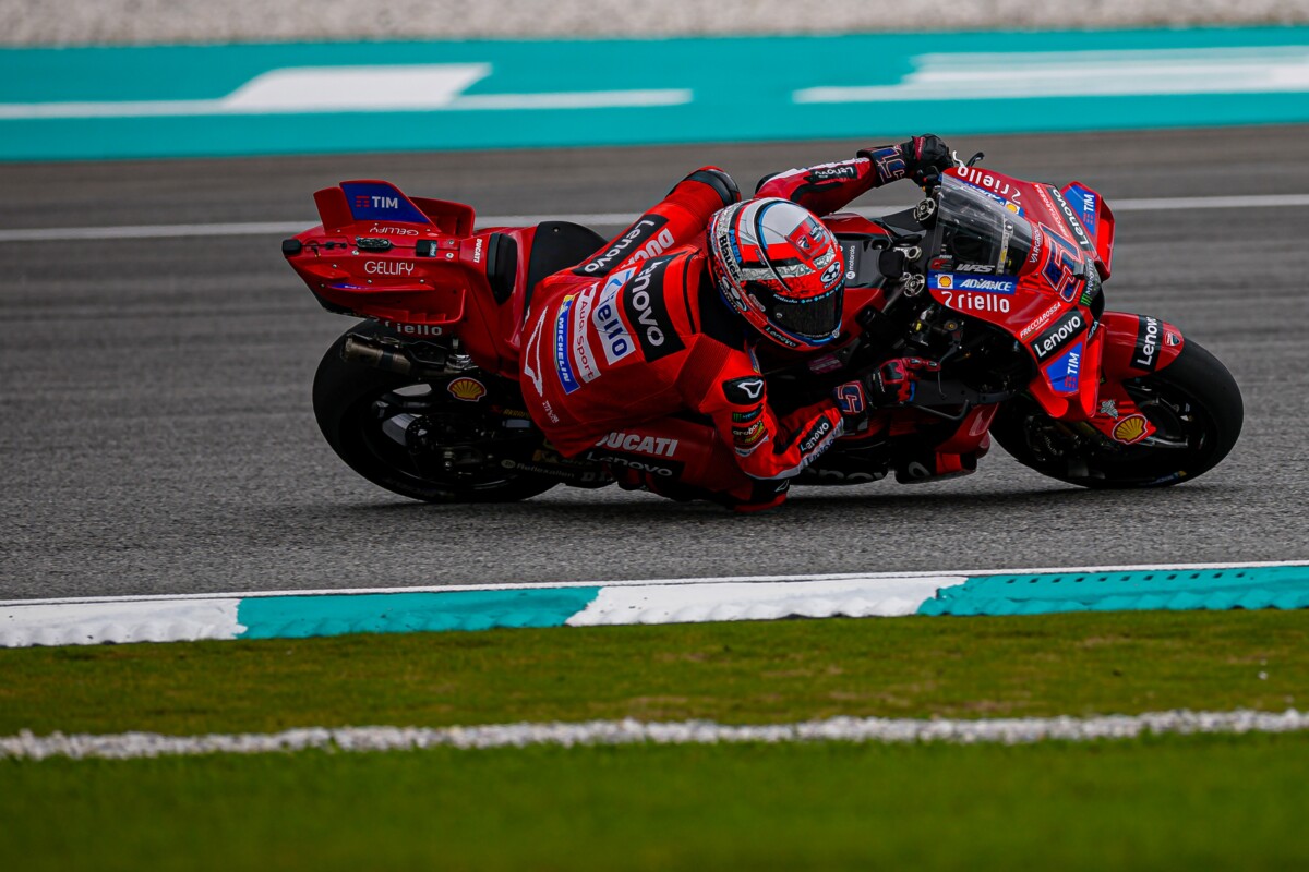 Il Ducati Lenovo Team ha terminato la prima giornata in pista al Sepang International Circuit in Malesia, teatro del ventesimo GP della stagione. Francesco Bagnaia, dopo una buona prestazione nelle libere, ha terminato le Practice in dodicesima posizione. Come il compagno di squadra Michele Pirro – ventiduesimo – sarà costretto a prendere parte alla Q1. Bagnaia, che aveva chiuso le libere sul bagnato in seconda posizione, è rimasto tra i primi tre per buona parte della sessione del pomeriggio. Tuttavia, con l’arrivo di una leggera pioggia nel finale, non è riuscito a migliorare il proprio tempo e ha chiuso dodicesimo, a soli 89 millesimi dalla top ten. Michele Pirro ha continuato il lavoro di messa a punto della Desmosedici GP, completando il turno pomeridiano in ventiduesima posizione. Il Ducati Lenovo Team tornerà in azione domani mattina alle 4:10 ora italiana per le Free Practice 2, a cui seguiranno la Q1 alle 4:50 e la Q2 alle 5:15. La ventesima Sprint della stagione, di 10 giri, avrà inizio alle 9:00.