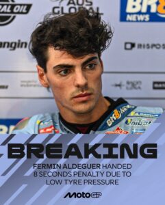 UPDATE: Fermín Aldeguer (BK8 Gresini Racing MotoGP) è finito sotto investigazione per pressione dei pneumatici non regolamentare, poi confermata alla fine della Tissot Sprint. Lo spagnolo è stato sanzionato con 8 secondi di penalità e ha quindi perso la terza posizione, ereditata da Pedro Acosta. Aldeguer vince comunque il titolo di ‘Rookie of the Year’.