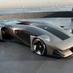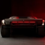 Il fianco presenta tagli verticali di reminiscenza F80, rimarcando l’ispirazione che il linguaggio tecnico-stilistico introdotto dalla nuova supercar di Maranello sia destinato a influenzare i futuri modelli di produzione. Questo linguaggio si manifesta nel contrasto tra le linee tese e tecniche dei parafanghi e il corpo vettura scultoreo, con un’estetica resa ancora più efficace dall’ottimizzazione matematica gestita da algoritmi generativi.