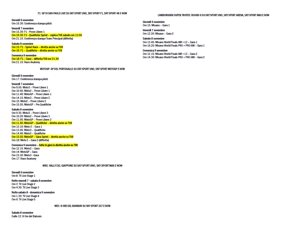 Tags: bahrainbrasileF1giapponeLamborghini Super TrofeomisanomotoGPorari TVportogalloskyTV8WECWRC
