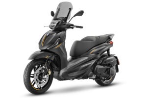Piaggio propone una versione speciale di Beverly, uno degli scooter a ruota aIta più apprezzati e venduti in assoluto, per celebrare i 25 anni dall’uscita del primo esemplare. Piaggio Beverly 25th Anniversary, disponibile con l’ultima evoluzione dei motori 310 hpe e 400 hpe, è caratterizzato da uno speciale allestimento dedicato che reinterpreta gli elementi più distintivi del modello originario, unendoli all’impronta sportiva dell’ultima generazione. La colorazione dedicata Grigio 25th Anniversary è una inedita tonalità di grigio scuro con finitura opaca metallizzata. La livrea è completata da una grafica grigio chiaro che percorre tutto il veicolo, dalle fiancate posteriori fino al parafango anteriore. A ciò si aggiunge il cupolino fumé, altro elemento tipico del primo Beverly e alcuni dettagli in nero lucido e oro, che ne esaltano la sportività. La sella dedicata in doppio rivestimento presenta una trama forata ed è arricchita da raffinate doppie cuciture che riprendono i dettagli veicolo nei colori nero, grigio e oro. Sul controscudo la targhetta “25th Anniversary”, impreziosita dal tricolore che simboleggia l’italianità di Beverly, ne identifica l’edizione speciale.