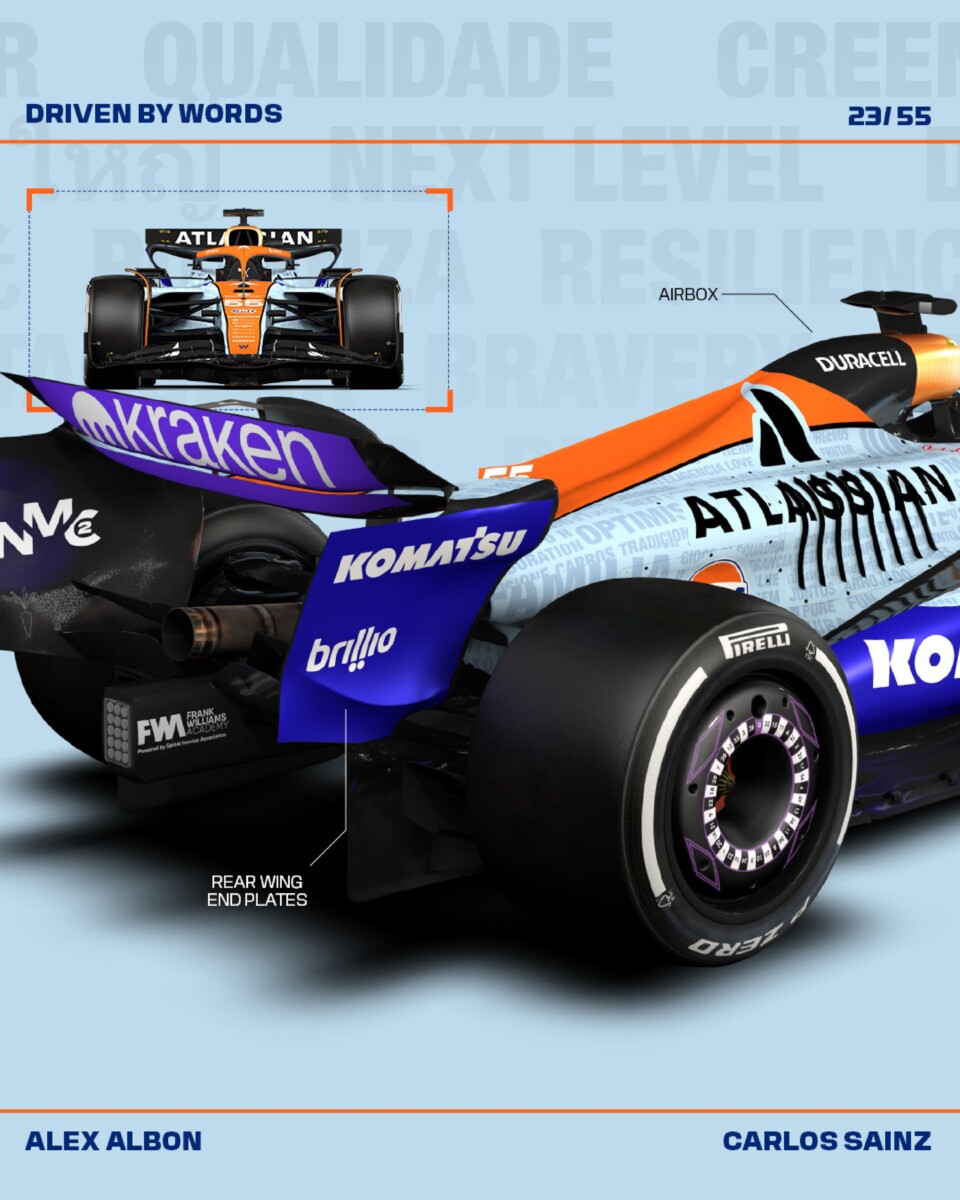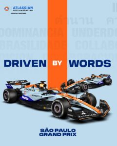 I tifosi sono stati invitati a inviare le loro parole a luglio. Da allora, i fan hanno votato oltre 140.000 volte, con le scelte più popolari tra cui “Legacy” (con oltre 7.700 voti), “Passion” (con oltre 5.800 voti) e “Teamwork” (con oltre 4.100 voti). Queste parole sono state ora incorporate in un’iconica livrea Gulf, caratterizzata dai colori azzurro e arancione tipici delle corse del marchio. Alex Albon e Carlos Sainz porteranno in pista la livrea “Driven by Words” nel GP di San Paolo di questo fine settimana. La 21° gara della stagione rappresenta un’altra opportunità per il team di consolidare il quinto posto nel Costruttori, nell’anno di maggior successo della Williams dal 2016.