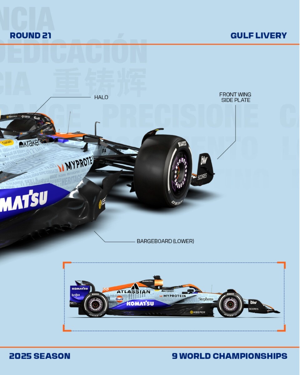 Introducing our livery for the 2025 São Paulo Grand Prix. Incorporating 493 words in 12 different languages.#MyGulfWord @GulfOilIntl pic.twitter.com/v8fUgqEARc