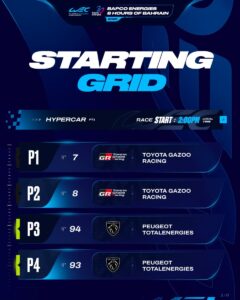 La 8 Ore del Bahrain, ultimo atto del FIA WEC 2025, vedrà la 499P #51 dell’equipaggio leader della classifica iridata Piloti formato da Alessandro Pier Guidi, James Calado e Antonio Giovinazzi, scattare dalla settima posizione. La vettura gemella #50 del team Ferrari – AF Corse, condivisa da Antonio Fuoco, Miguel Molina e Nicklas Nielsen, partirà 11°. Una posizione più arretrata, invece, la 499P #83 iscritta dal team privato AF Corse e affidata al pilota ufficiale Ferrari Yifei Ye, assieme a Robert Kubica e Phil Hanson, secondi nella classifica del Mondiale Piloti. La gara, decisiva per l’attribuzione dei titoli iridati, scatterà sabato 8 novembre alle 14.00 (orario locale).