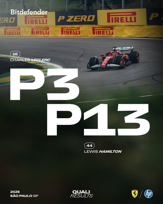 Dopo la quinta e la settima posizione nella Sprint, Charles Leclerc e Lewis Hamilton sono tornati in pista per le qualifiche del GP del Brasile, registrando rispettivamente il terzo e tredicesimo tempo finale.