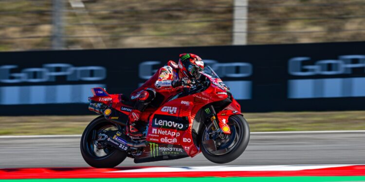 Nella ventunesima Sprint della stagione, a Portimao, il Ducati Lenovo Team chiude all’ottavo posto con Francesco Bagnaia, mentre Nicolò Bulega è scivolato nella prima metà della corsa, vinta da Alex Marquez con la Ducati del Gresini Racing Team. Scattato dalla quarta casella dello schieramento, Bagnaia ha perso una posizione alla prima curva. Dopo essersi difeso bene da Di Giannantonio per più di metà gara, Bagnaia ha poi faticato a livello di grip nel finale, chiudendo ottavo. Bulega, qualificatosi diciottesimo, è stato protagonista di una caduta senza conseguenze nel corso del quarto giro. Il Ducati Lenovo Team tornerà in azione domani mattina alla 10:40 ora italiana per il warm up, a cui seguirà il GP del Portogallo, di 25 giri, con partenza alle 14:00.